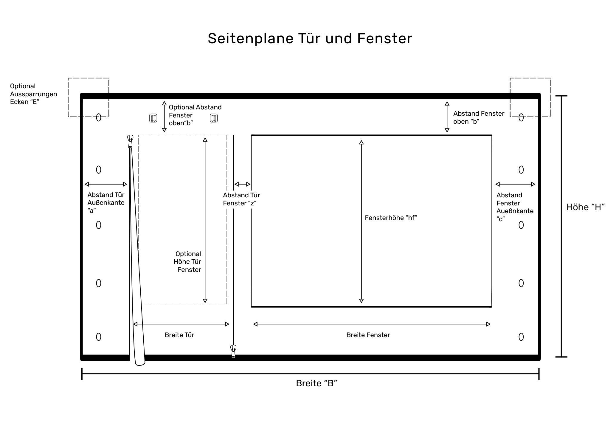 Terrassenplane, Seitenwand mit Fenster und Tür nach Maß, PVC