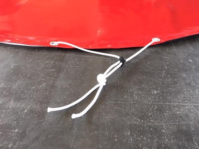 Anwendung: runde Plane auslegen, CSA – Anzug ablegen und Plane mittels Kordel zuziehen und mit Stopper fixieren