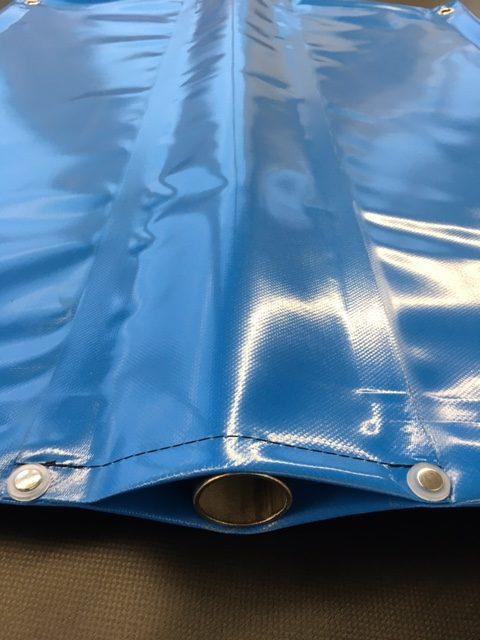 - Die langen Seiten sind gesäumt und für eine sichere Befestigung der Plane lassen sich an den zwei langen Seiten (= Länge), zwischen jeder Hohlsaumtasche, ca. jeden Meter eine NIROSTA – Rundöse von wahlsweise 12 mm, 16 mm oder 25 mm Ø. Optional ist die Plane auch mit zwei Ösen pro Meter oder ganz ohne Ösen bestellbar.